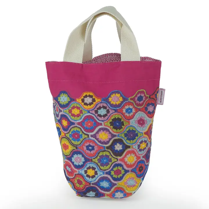 Estos bolsos son súper adorables, perfectos para llevar el almuerzo, como un bolso pequeño de mano, para uso diario o para proyectos pequeños de lana. Miden 29 cm de alto por 28 cm de ancho cuando están extendidos, y están forrados con una tela a juego.