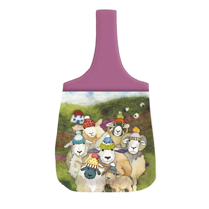 Diseñado para proyectos pequeños con lana, mide 21 cm de ancho en la base y 40 cm de alto. Cuenta con un bolsillo frontal y está forrado con nuestro propio patrón tejido.