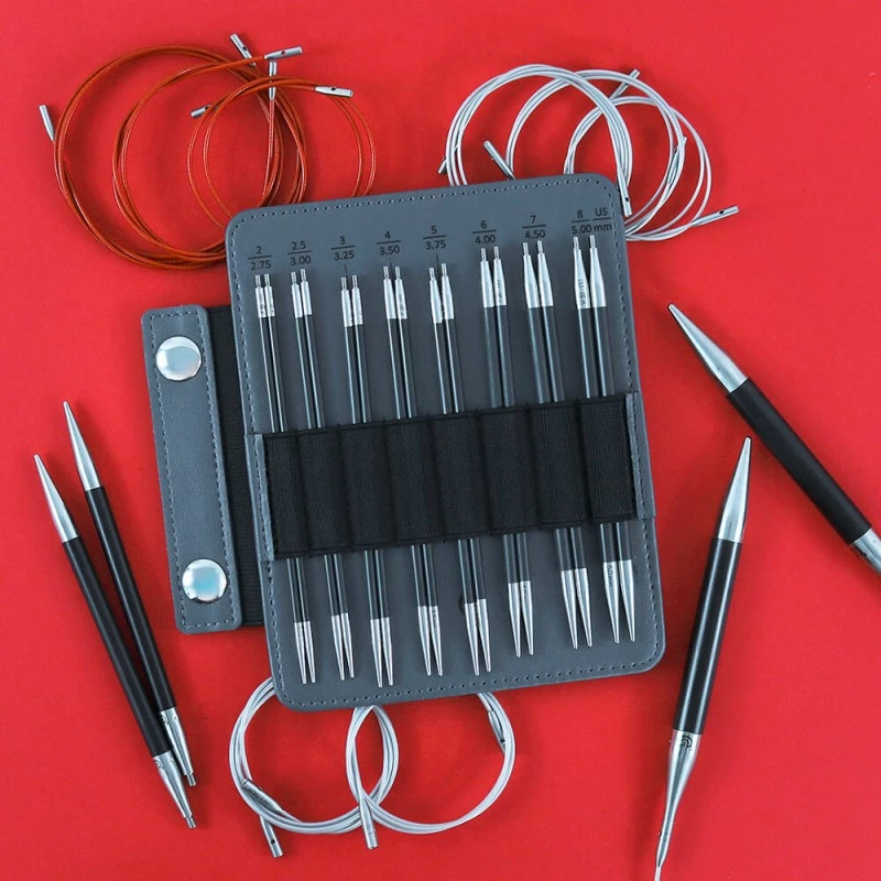 - 14 pares de agujas circulares intercambiables de 13 cms: